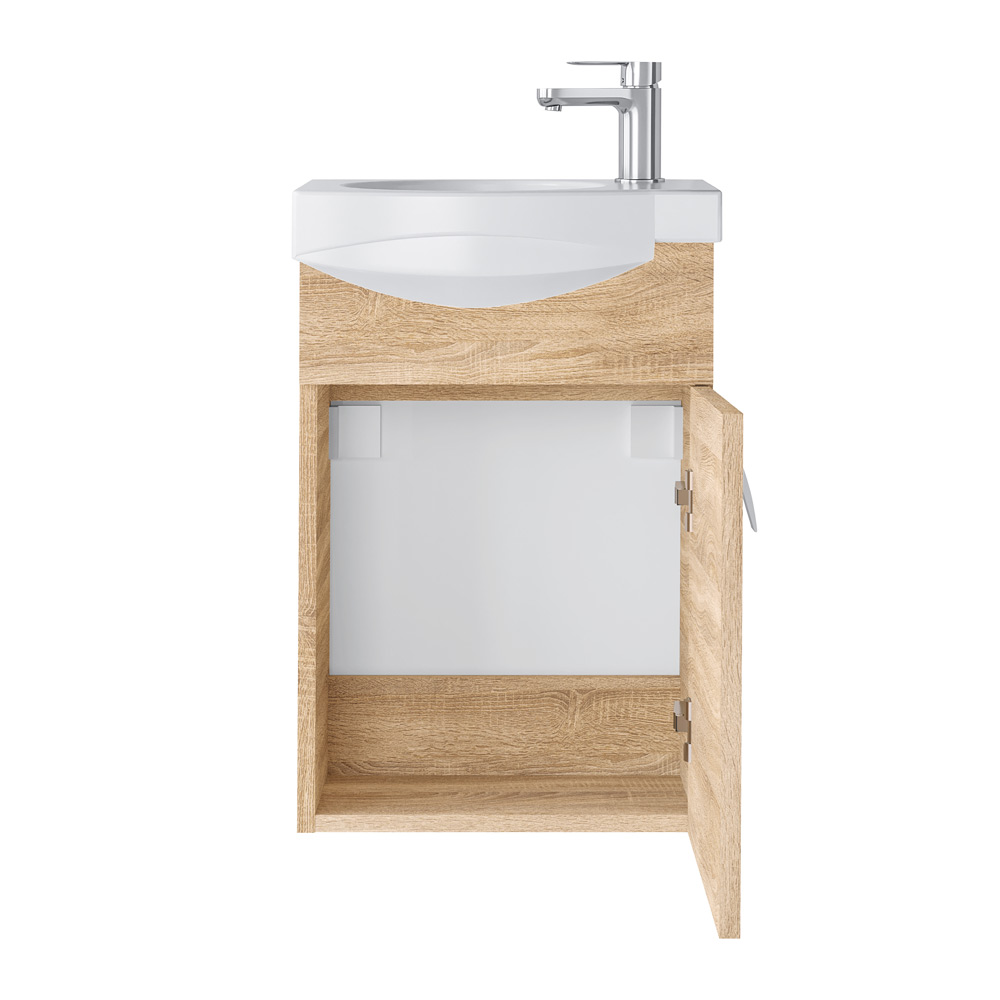 Pakabinama vonios spintelė su durelėm. Spintelė parduodama kartu su praustuvu Riva40. Sifonas ir vandens maišytuvas į komplektaciją neįeina.